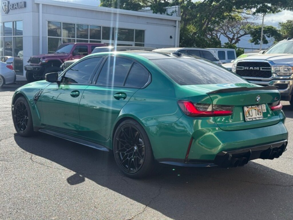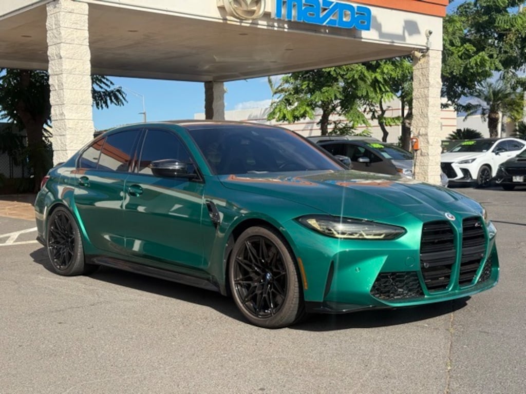 This BMW M3 has many features and is well equipped including Connected Package Pro, Executive Package (BMW Curved Display w/HUD, Heated Steering Wheel, Power Tailgate, Remote Engine Start, and SensaTec Dashboard), 16 Speakers, 4-Wheel Disc Brakes, ABS brakes, Adaptive suspension, Air Conditioning, Alloy wheels, AM/FM radio: SiriusXM, Apple CarPlay & Android Auto Compatibility, Auto High-beam Headlights, Auto-dimming door mirrors, Auto-dimming Rear-View mirror, Automatic temperature control, BMW Assist eCall, BMW TeleServices, Brake assist, Bumpers: body-color, Carbon Fiber Trim, Compass, ConnectedDrive Services, Delay-off headlights, Driver door bin, Driver vanity mirror, Dual front impact airbags, Dual front side impact airbags, Electronic Stability Control, Emergency communication system: BMW Assist eCall, Extended Merino Leather Upholstery, Exterior Parking Camera Rear, Four wheel independent suspension, Front anti-roll bar, Front Bucket Seats, Front Center Armrest, Front dual zone A/C, Front reading lights, Front Ventilated Seats, Fully automatic headlights, Garage door transmitter, harman/kardon Surround Sound System, harman/kardon® Speakers, Heated door mirrors, Heated Front Seats, Heated front seats, Illuminated entry, Knee airbag, Leather Shift Knob, Low tire pressure warning, Lumbar Support, M Compound Brakes w/Black Calipers, M Drive Professional, M Shadowline Lights, M Sport Seats, Memory seat, Navigation, Navigation System, Occupant sensing airbag, Outside temperature display, Overhead airbag, Panic alarm, Passenger door bin, Passenger vanity mirror, Power door mirrors, Power driver seat, Power Front Seats, Power passenger seat, Power steering, Power windows, Radio data system, Radio: AM/FM Audio System, Rain sensing wipers, Rear air conditioning, Rear anti-roll bar, Rear reading lights, Rear window defroster, Remote keyless entry, Security system, SiriusXM w/360L & 1 Year Platinum Plan Subscription, Speed control, Speed-sensing steering, Speed-Sensitive Wipers, Split folding rear seat, Spoiler, Sport steering wheel, Steering wheel mounted audio controls, Tachometer, Telescoping steering wheel, Tilt steering wheel, Traction control, Trip computer, Turn signal indicator mirrors, Variably intermittent wipers, Wheels: 19"x9.5" Fr. & 20"x10.5" Rr M Black, Wheels: 19"x9.5" Fr.&20"x10.5"Rr. M Bi-color (1T8), and Wireless Device Charging. Isle of Man Green Metallic 2024 BMW M3 Competition RWD 8-Speed Automatic Steptronic 3.0L I6 Turbocharged DOHC 24V LEV3-ULEV70 503hp