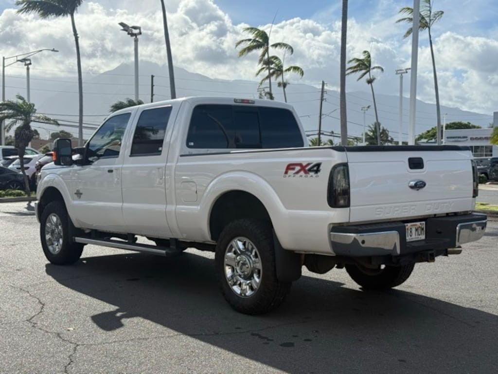 This Ford F-350SD has many features and is well equipped including Chrome Package, FX4 Off-Road Package (Colored Front & Rear Rancho Branded Shocks and Hill Descent Control), Heavy Service Front Suspension Package, Lariat Ultimate Package (Memory Power Heated/Cooled Driver's Seat, Memory PowerScope Trailer Tow Mirrors, and Power Heated/Cooled Passenger Seat), Order Code 618A, 4WD, 10 Speakers, 3.73 Axle Ratio, 4-Wheel Disc Brakes, ABS brakes, Adjustable pedals, Air Conditioning, All-Weather Floor Mats, Alloy wheels, AM/FM radio: SiriusXM, Auto-dimming Rear-View mirror, Automatic temperature control, Brake assist, Bumpers: chrome, CD player, Compass, Delay-off headlights, Driver door bin, Driver vanity mirror, Dual front impact airbags, Dual front side impact airbags, Electronic Locking w/3.55 Axle Ratio, Electronic Stability Control, Exterior Parking Camera Rear, Extra Heavy Duty 200-Amp Alternator, Front anti-roll bar, Front Bucket Seats, Front Center Armrest, Front dual zone A/C, Front fog lights, Front reading lights, Fully automatic headlights, Heated door mirrors, Illuminated entry, Leather steering wheel, Low tire pressure warning, Outside temperature display, Overhead airbag, Overhead console, Panic alarm, Passenger door bin, Passenger vanity mirror, Power door mirrors, Power driver seat, Power passenger seat, Power steering, Power windows, Premium audio system: Sony, Premium Leather Seating Surfaces 40/Console/40, Radio data system, Radio: Premium Sony Audio w/Single-CD/MP3, Rear Parking Sensors, Rear reading lights, Rear seat center armrest, Rear step bumper, Rear window defroster, Remote keyless entry, Security system, SiriusXM Satellite Radio, Speed control, Split folding rear seat, Steering wheel mounted audio controls, SYNC w/MyFord Touch & SYNC Services, Tachometer, Telescoping steering wheel, Tilt steering wheel, Traction control, Trip computer, Turn signal indicator mirrors, and Variably intermittent wipers. White Platinum Clearcoat Metallic 2016 Ford F-350SD Lariat 4WD TorqShift 6-Speed Automatic Power Stroke 6.7L V8 DI 32V OHV Turbodiesel 4WD.