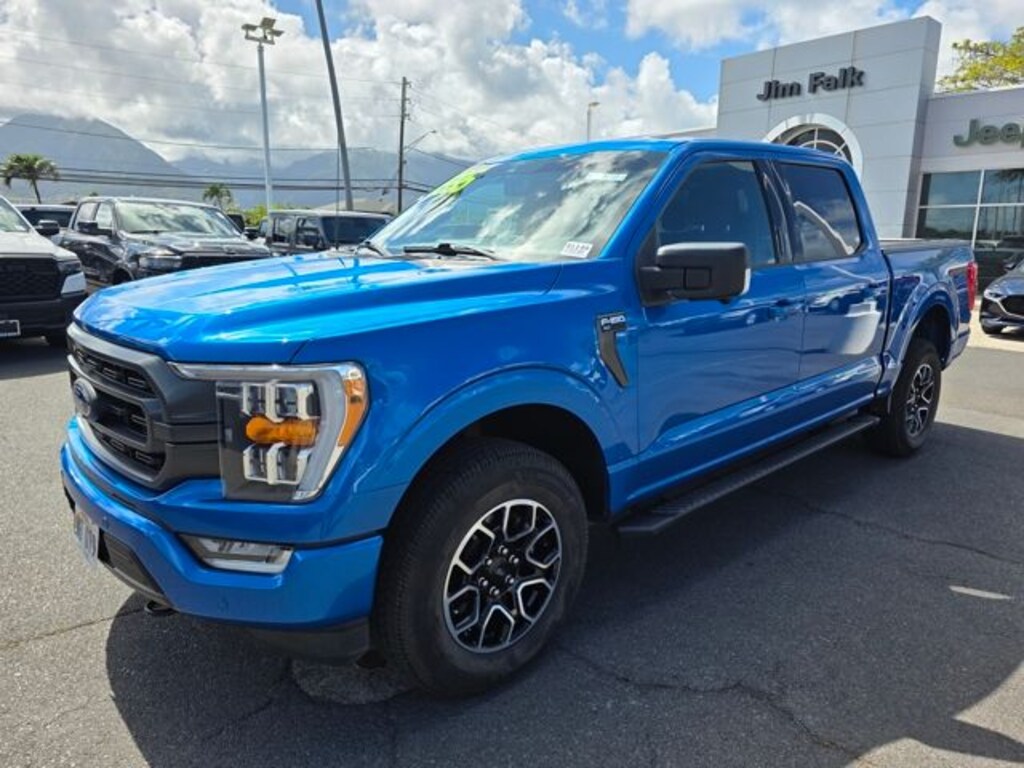 This Ford F-150 has many features and is well equipped including Equipment Group 302A High (Auto-Dimming Rear-View Mirror, Class IV Trailer Hitch Receiver, LED Box Lighting w/Zone Lighting, LED Sideview Mirror Spotlights, Onboard 400W Outlet, Power Glass Heated Sideview Mirrors, Radio: AM/FM SiriusXM w/360L, Remote Start System w/Remote Tailgate Release, and SYNC 4 w/Enhanced Voice Recognition), Ford Co-Pilot360 Assist 2.0 (Connected Built-In Navigation, Evasive Steering Assist, Intelligent Adaptive Cruise Control w/Stop & Go, Intersection Assist, and Speed Sign Recognition), FX4 Off-Road Package, Trailer Tow Package (Integrated Trailer Brake Controller and Pro Trailer Backup Assist), XLT Sport Appearance Package (Accent-Color Step Bars, Black 2-Bar Style Grille w/Black Surround/Accents, Body-Color Door & Tailgate Handles, Body-Color Front & Rear Bumpers, Box Side Decals, Chrome Single-Tip Exhaust, Unique Sport Cloth 40/Console/40 Front-Seats, and Wheels: 18" 6-Spoke Machined Aluminum), 4WD, 3.31 Axle Ratio, 360 Degree Camera, 4-Wheel Disc Brakes, 6 Speakers, ABS brakes, Air Conditioning, Alloy wheels, AM/FM radio, Auto High-beam Headlights, Brake assist, Bumpers: chrome, Cloth 40/20/40 Front Seat, Compass, Delay-off headlights, Driver door bin, Driver vanity mirror, Dual front impact airbags, Dual front side impact airbags, Electronic Locking w/3.55 Axle Ratio, Electronic Stability Control, Emergency communication system: SYNC 4 911 Assist, Extended Range 36 Gallon Fuel Tank, Exterior Parking Camera Rear, Front anti-roll bar, Front Center Armrest w/Storage, Front fog lights, Front reading lights, Front wheel independent suspension, Fully automatic headlights, Heated door mirrors, Illuminated entry, Low tire pressure warning, Occupant sensing airbag, Outside temperature display, Overhead airbag, Overhead console, Panic alarm, Passenger door bin, Passenger vanity mirror, Power door mirrors, Power steering, Power windows, Power-Adjustable Pedals, Power-Sliding Rear Window, Radio data system, Radio: AM/FM Stereo w/6 Speakers, Rear reading lights, Rear step bumper, Rear window defroster, Remote keyless entry, Security system, Speed control, Speed-sensing steering, Split folding rear seat, Steering wheel mounted audio controls, SYNC 4, Tachometer, Telescoping steering wheel, Tilt steering wheel, Traction control, Tray Style Floor Liner (47W), Trip computer, Variably intermittent wipers, Voltmeter, and Wheels: 17" Silver Painted Aluminum. Blue Metallic 2021 Ford F-150 XLT 4WD 10-Speed Automatic 3.5L V6 EcoBoost 4WD.
