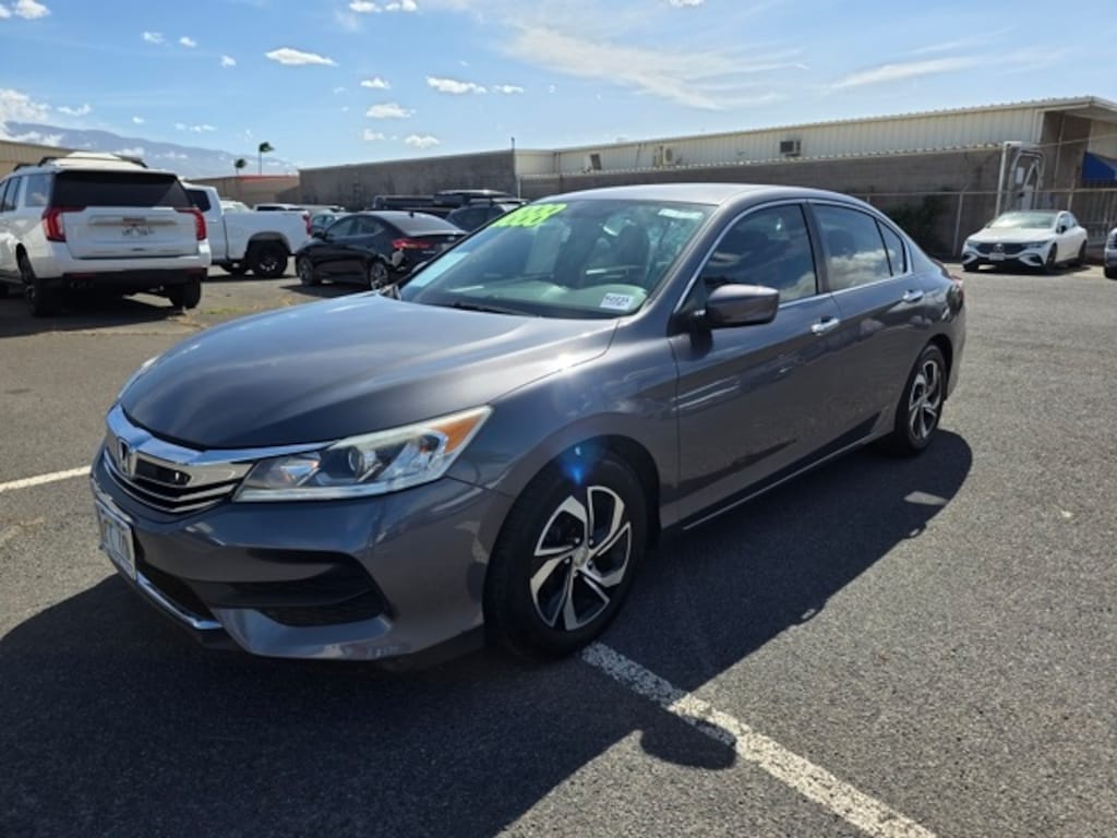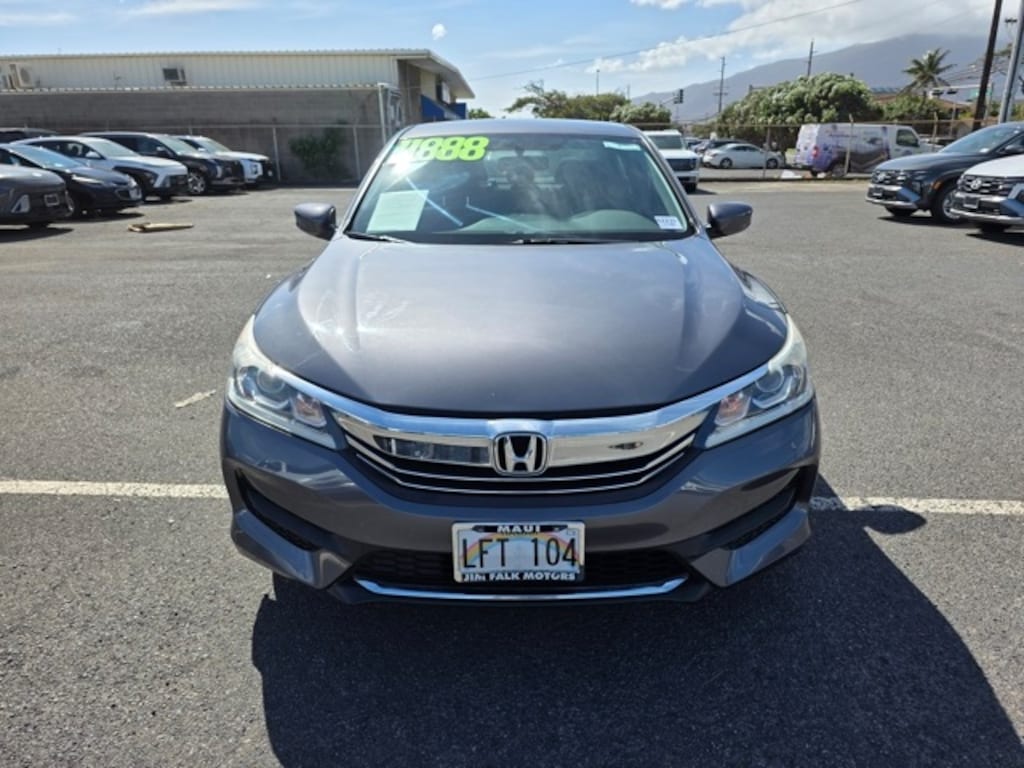 This Honda Accord has many features and is well equipped including Cloth, 16" Alloy Wheels, 160-Watt AM/FM/CD Audio System, 4 Speakers, 4-Wheel Disc Brakes, ABS brakes, Air Conditioning, Alloy wheels, AM/FM radio, Automatic temperature control, Brake assist, Bumpers: body-color, CD player, Cloth Seat Trim, Delay-off headlights, Driver door bin, Driver vanity mirror, Dual front impact airbags, Dual front side impact airbags, Electronic Stability Control, Exterior Parking Camera Rear, Four wheel independent suspension, Front anti-roll bar, Front Bucket Seats, Front Center Armrest, Front dual zone A/C, Front reading lights, Fully automatic headlights, Illuminated entry, Leather Shift Knob, Low tire pressure warning, Occupant sensing airbag, Outside temperature display, Overhead airbag, Overhead console, Panic alarm, Passenger door bin, Passenger vanity mirror, Power door mirrors, Power steering, Power windows, Radio data system, Rear anti-roll bar, Rear seat center armrest, Rear window defroster, Remote keyless entry, Security system, Speed control, Speed-sensing steering, Speed-Sensitive Wipers, Steering wheel mounted audio controls, Tachometer, Telescoping steering wheel, Tilt steering wheel, Traction control, Trip computer, and Variably intermittent wipers. Modern Steel 2016 Honda Accord LX FWD CVT 2.4L I4 DOHC i-VTEC 16V Cloth.