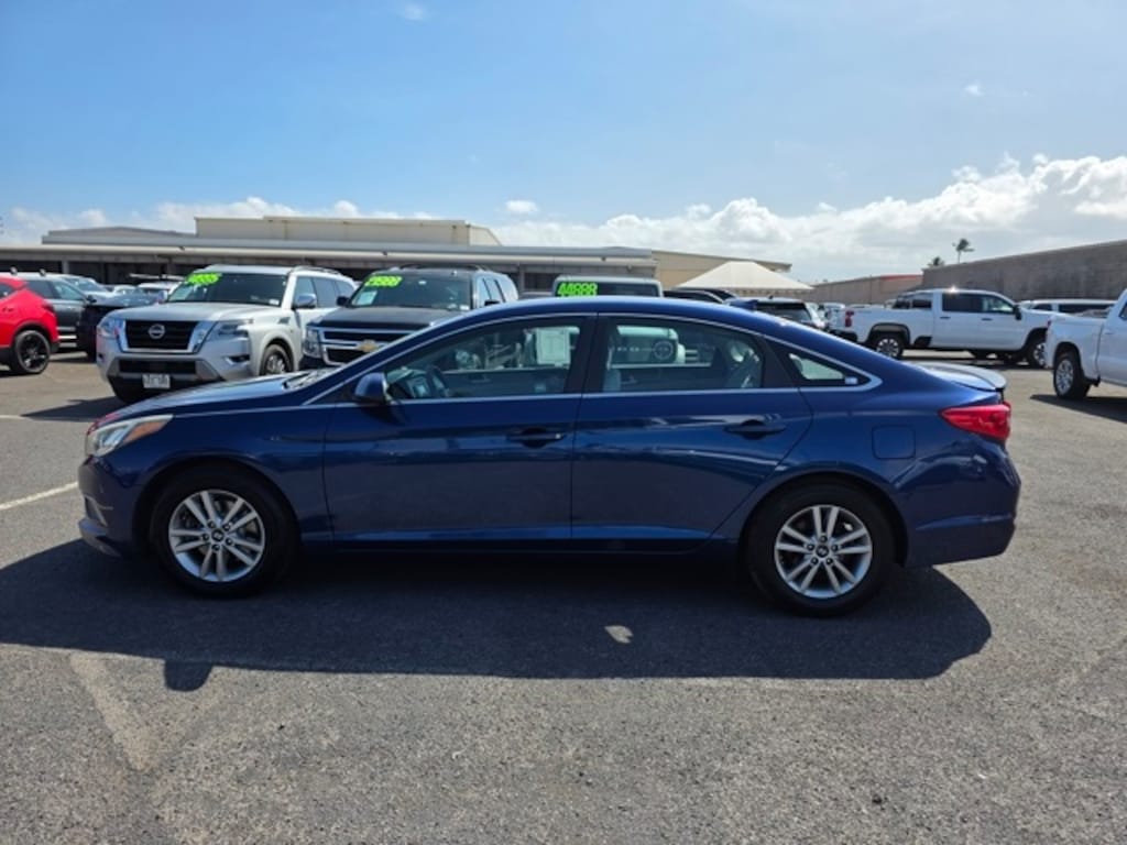 This Hyundai Sonata has many features and is well equipped including Option Group 01, Gray Cloth, 16 x 6.5J Aluminum Alloy Wheels, 4-Wheel Disc Brakes, 6 Speakers, ABS brakes, Air Conditioning, Alloy wheels, AM/FM radio: SiriusXM, Brake assist, Bumpers: body-color, CD player, Driver door bin, Driver vanity mirror, Dual front impact airbags, Dual front side impact airbags, Electronic Stability Control, Four wheel independent suspension, Front anti-roll bar, Front Bucket Seats, Front Center Armrest, Front reading lights, Heated door mirrors, Illuminated entry, Knee airbag, Low tire pressure warning, Occupant sensing airbag, Outside temperature display, Overhead airbag, Overhead console, Panic alarm, Passenger door bin, Passenger vanity mirror, Power door mirrors, Power steering, Power windows, Radio: AM/FM/SiriusXM/CD/MP3 Audio System, Rear anti-roll bar, Rear seat center armrest, Rear window defroster, Remote keyless entry, Security system, Speed control, Speed-sensing steering, Speed-Sensitive Wipers, Split folding rear seat, Spoiler, Steering wheel mounted audio controls, Tachometer, Telescoping steering wheel, Tilt steering wheel, Traction control, Trip computer, Variably intermittent wipers, and YES Essentials Premium Cloth Seating Surfaces. Lakeside Blue 2017 Hyundai Sonata FWD 6-Speed Automatic with Shiftronic 2.4L I4 DGI DOHC 16V ULEV II 185hp Gray Cloth.