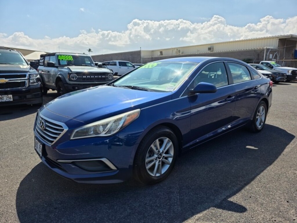 This Hyundai Sonata has many features and is well equipped including Option Group 01, Gray Cloth, 16 x 6.5J Aluminum Alloy Wheels, 4-Wheel Disc Brakes, 6 Speakers, ABS brakes, Air Conditioning, Alloy wheels, AM/FM radio: SiriusXM, Brake assist, Bumpers: body-color, CD player, Driver door bin, Driver vanity mirror, Dual front impact airbags, Dual front side impact airbags, Electronic Stability Control, Four wheel independent suspension, Front anti-roll bar, Front Bucket Seats, Front Center Armrest, Front reading lights, Heated door mirrors, Illuminated entry, Knee airbag, Low tire pressure warning, Occupant sensing airbag, Outside temperature display, Overhead airbag, Overhead console, Panic alarm, Passenger door bin, Passenger vanity mirror, Power door mirrors, Power steering, Power windows, Radio: AM/FM/SiriusXM/CD/MP3 Audio System, Rear anti-roll bar, Rear seat center armrest, Rear window defroster, Remote keyless entry, Security system, Speed control, Speed-sensing steering, Speed-Sensitive Wipers, Split folding rear seat, Spoiler, Steering wheel mounted audio controls, Tachometer, Telescoping steering wheel, Tilt steering wheel, Traction control, Trip computer, Variably intermittent wipers, and YES Essentials Premium Cloth Seating Surfaces. Lakeside Blue 2017 Hyundai Sonata FWD 6-Speed Automatic with Shiftronic 2.4L I4 DGI DOHC 16V ULEV II 185hp Gray Cloth.