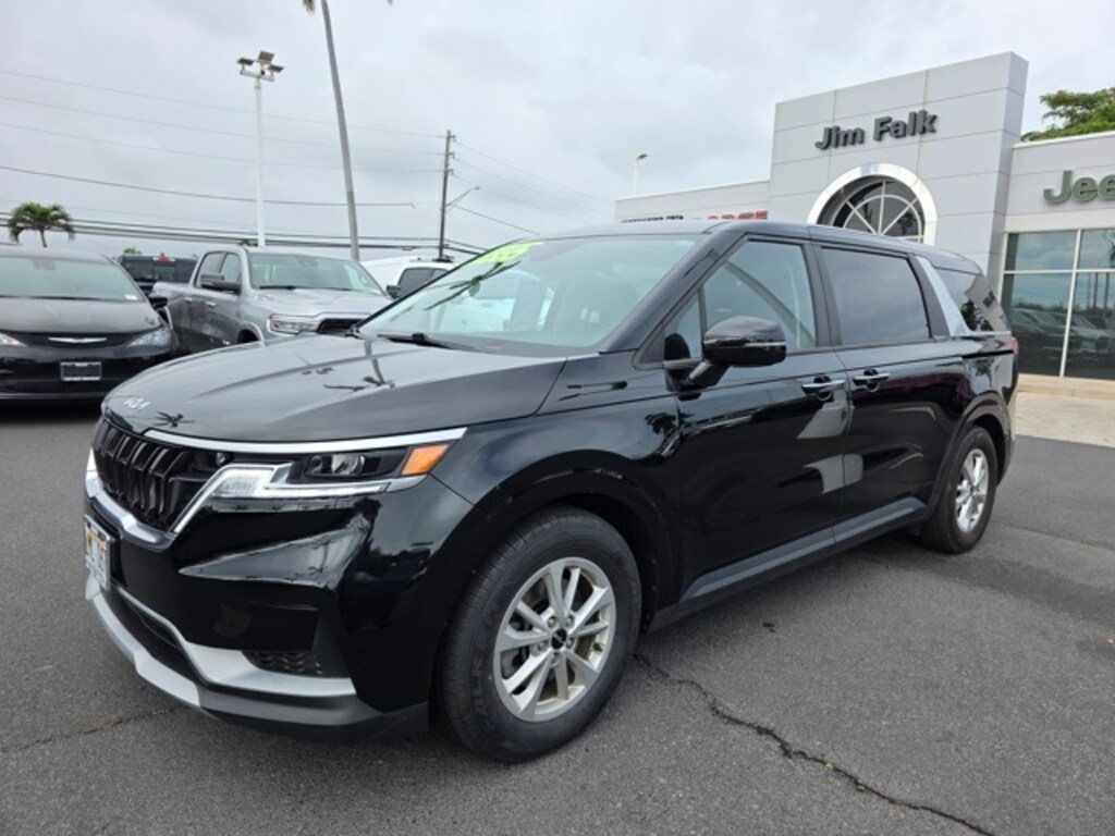 This Kia Carnival has many features and is well equipped including 2-Way Power Driver's Lumbar Support, 3.51 Axle Ratio, 3rd row seats: split-bench, 4-Wheel Disc Brakes, 6 Speakers, 8 Way Power Driver's Seat, ABS brakes, Air Conditioning, Alloy wheels, AM/FM radio, Apple CarPlay & Android Auto, Artificial Leather Seat Trim, Auto High-beam Headlights, Brake assist, Bumpers: body-color, Cargo Net, Carpeted Floor Mats (8-Passenger), Delay-off headlights, Driver door bin, Driver vanity mirror, Dual front impact airbags, Dual front side impact airbags, Electronic Stability Control, Four wheel independent suspension, Front anti-roll bar, Front Bucket Seats, Front Center Armrest, Front reading lights, Fully automatic headlights, Heated door mirrors, Heated Front Bucket Seats, Heated front seats, Illuminated entry, Knee airbag, Leather Shift Knob, Leather steering wheel, Low tire pressure warning, Occupant sensing airbag, Outside temperature display, Overhead airbag, Overhead console, Panic alarm, Passenger door bin, Passenger vanity mirror, Power door mirrors, Power driver seat, Power steering, Power windows, Radio: AM/FM Audio System, Rear air conditioning, Rear anti-roll bar, Rear reading lights, Rear window defroster, Rear window wiper, Reclining 3rd row seat, Remote keyless entry, Security system, Speed control, Speed-sensing steering, Split folding rear seat, Spoiler, Steering wheel mounted audio controls, Tachometer, Telescoping steering wheel, Textured Bumper Applique, Tilt steering wheel, Traction control, Trip computer, Turn signal indicator mirrors, Variably intermittent wipers, and Wheels: 6.5J x 17" Clear Silver Painted Alloy. Aurora Black 2022 Kia Carnival LXS FWD 8-Speed Automatic V6