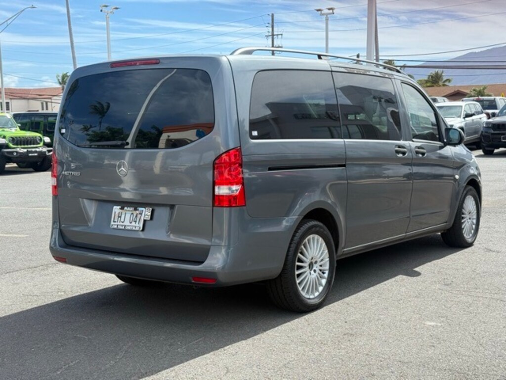 This Mercedes-Benz Metris has many features and is well equipped including 3rd row seats: bench, 4-Wheel Disc Brakes, 5 Front & 4 Rear Audio System Speakers, 7-Passenger Seating, 9 Speakers, ABS brakes, Adjustable Front Driver Seat, Adjustable Front Passenger Seat, Air Conditioning, AM/FM radio, Brake assist, Delay-off headlights, Driver door bin, Driver's Seat Mounted Armrest, Dual front impact airbags, Dual front side impact airbags, Electronic Stability Control, Four wheel independent suspension, Front anti-roll bar, Front Bucket Seats, Fully automatic headlights, Illuminated entry, Low tire pressure warning, Occupant sensing airbag, Outside temperature display, Overhead airbag, Overhead console, Passenger door bin, Passenger seat mounted armrest, Power steering, Power windows, Rear air conditioning, Remote keyless entry, Removable Second Row Seats, 2-Places, Removable Third Row Seats, 3-Places, Tachometer, Tilt steering wheel, Traction control, and Wheels: 6.5J x 17" Steel. Flint Gray Metallic 2017 Mercedes-Benz Metris Passenger RWD 7G-TRONIC 7-Speed Automatic 2.0L I4 DI Turbocharged