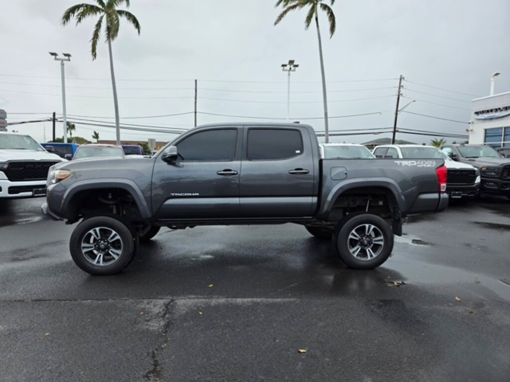 This Toyota Tacoma has many features and is well equipped including 4WD, 120V/400W Deck Mounted AC Power, 6 Speakers, ABS brakes, Air Conditioning, Alloy wheels, AM/FM radio: SiriusXM, Anti-whiplash front head restraints, Auto High-beam Headlights, Auto-Dimming Inside Rear-View Mirror w/Compass, Auto-dimming Rear-View mirror, Axle Ratio: 3.91, Black Overfenders, Brake assist, Bumpers: body-color, CD player, Compass, Driver door bin, Dual front impact airbags, Dual front side impact airbags, Electronic Stability Control, Engine Immobilizer, Exterior Parking Camera Rear, Fabric Seat Trim (FD), Front anti-roll bar, Front Bucket Seats, Front Center Armrest, Front fog lights, Front reading lights, Front wheel independent suspension, Illuminated entry, Knee airbag, Leather Shift Knob, LED Daytime Running Lamps, Low tire pressure warning, Navigation System, Occupant sensing airbag, Outside temperature display, Overhead airbag, Overhead console, Panic alarm, Passenger door bin, Power door mirrors, Power Sliding Rear Window w/Privacy Glass, Power steering, Power windows, Radio: Entune Premium w/AM/FM/CD/Nav/App Suite, Rear step bumper, Remote keyless entry, Remote Keyless Entry System, Security system, Smart Key w/Push Button Start, Speed control, Speed-sensing steering, Split folding rear seat, Steering wheel mounted audio controls, Tachometer, Telescoping steering wheel, Tilt steering wheel, Traction control, Trip computer, Turn signal indicator mirrors, Variable Intermittent Wipers, Variably intermittent wipers, Wheels: 16" x 7" Machined Contrast Alloy, and Wide Angle Front Fog Lamps. Gray 2018 Toyota Tacoma TRD Off-Road V6 4WD 6-Speed Automatic 3.5L V6 PDI DOHC 24V LEV3-ULEV70 278hp 4WD.